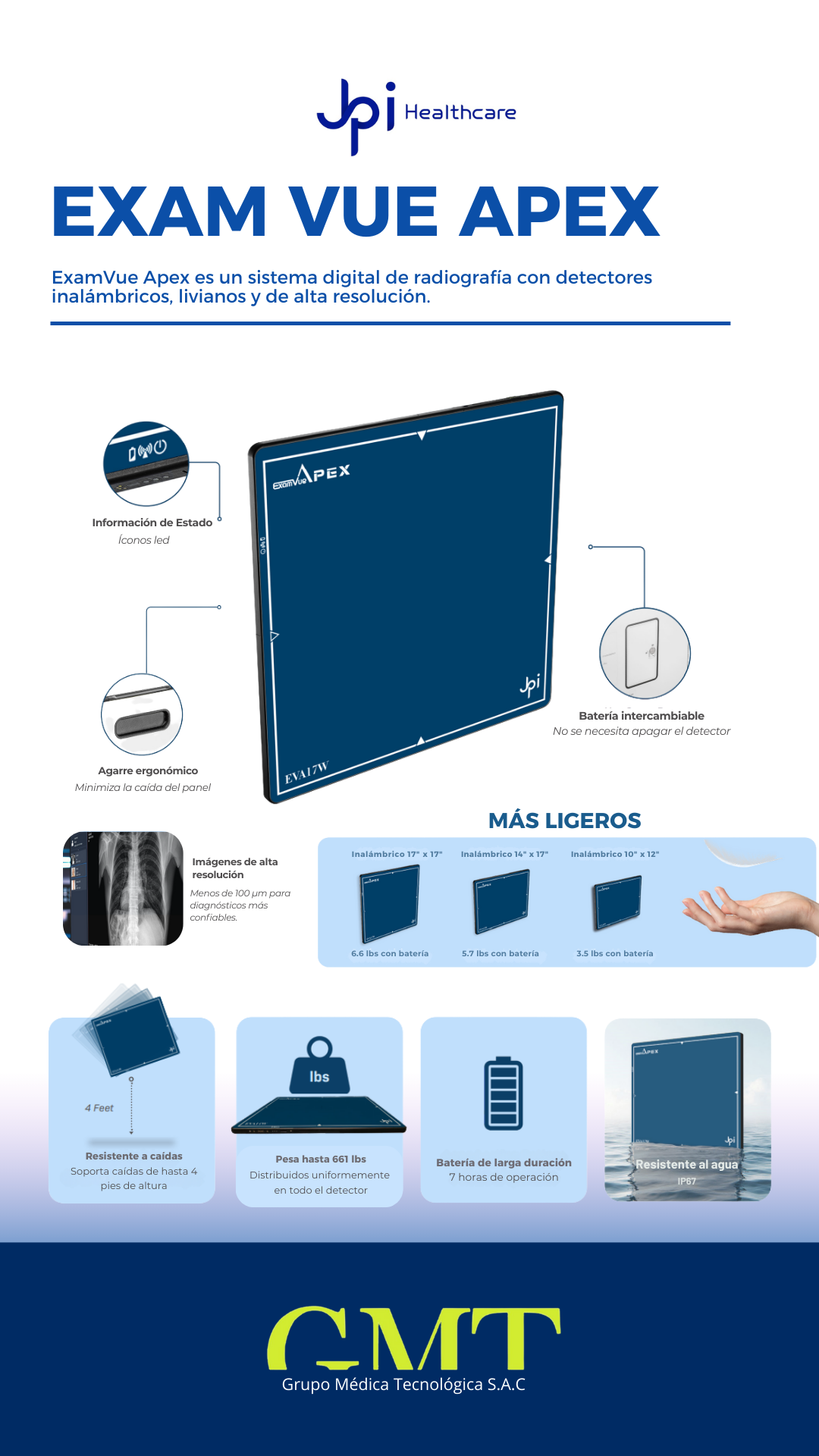 ExamVue Apex es un sistema digital de radiografía con detectores inalámbricos, livianos y de alta resolución.
