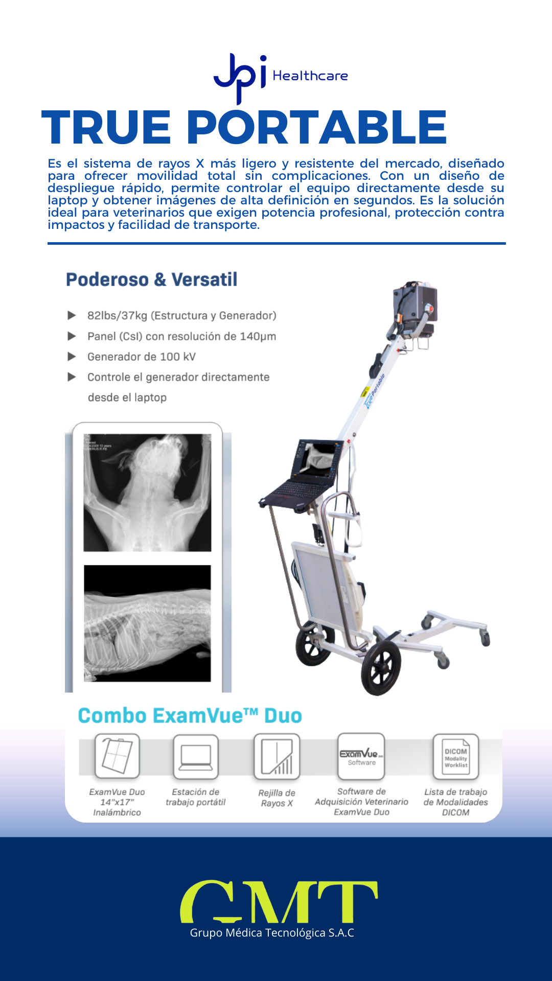 Diseñado pensando en los médicos veterinarios, el TruePortable™ se destaca como una opción superior: más liviano, más maniobrable y con mayor protección en comparación con sus competidores. Fácil de maniobrar en escaleras, espacios reducidos y en diversos ambientes, el TruePortable™ está diseñado para satisfacer las necesidades únicas de los profesionales veterinarios.